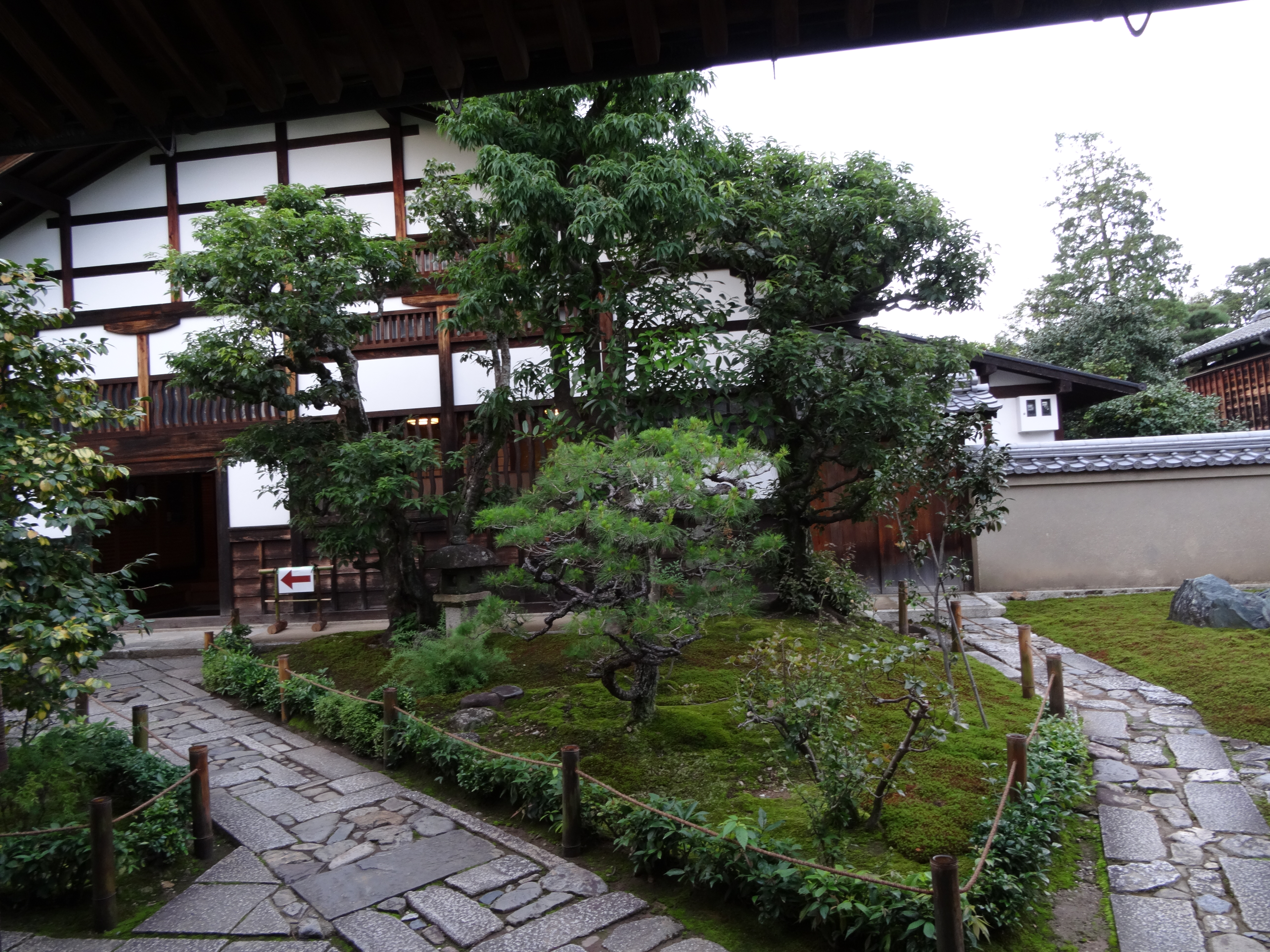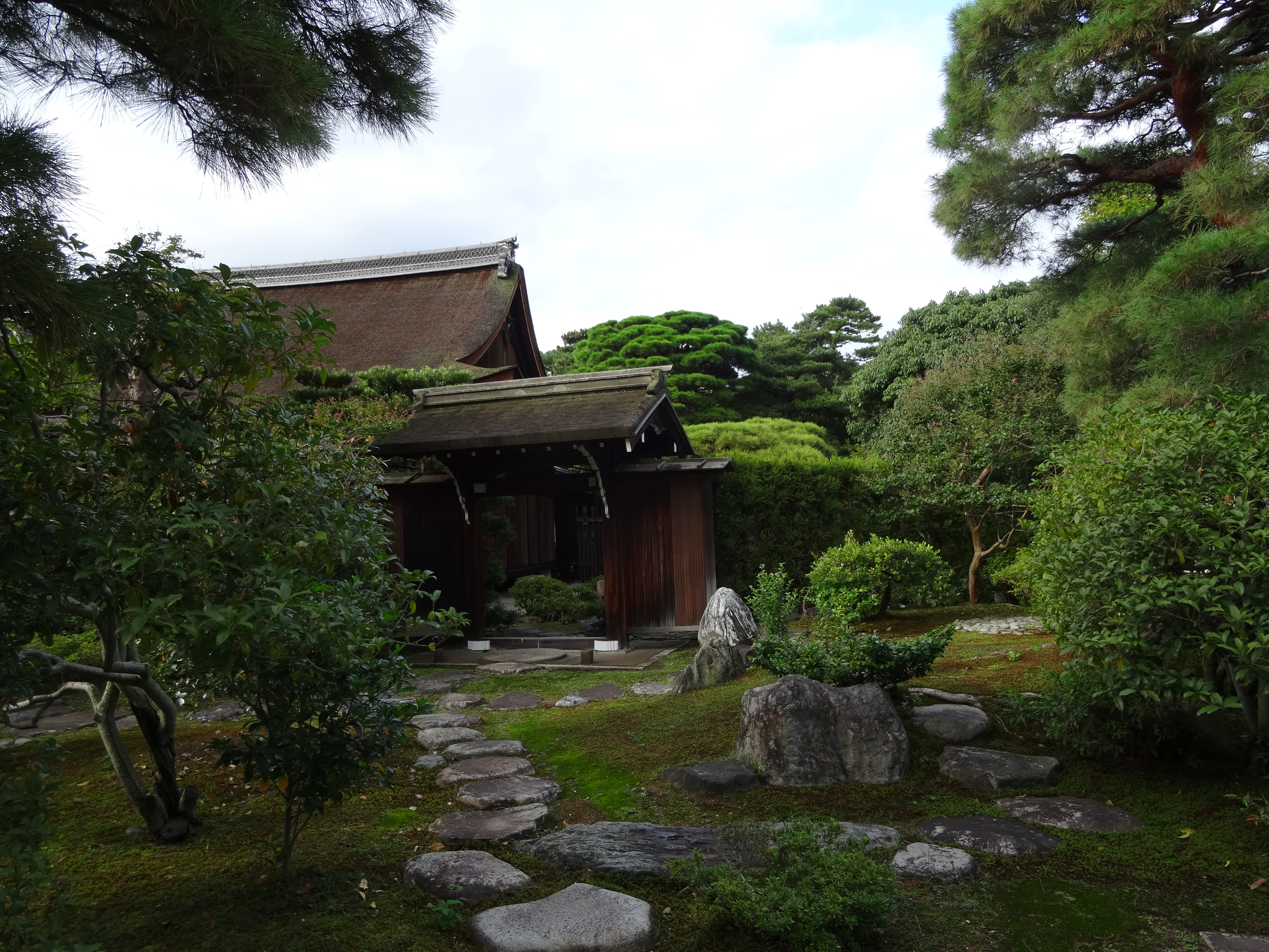 On marche (et c’est long !) vers le Daitoku-ji, célèbre ensemble de temples bouddhiques. Le problème, c’est que les édifices ferment à 17 heures et nous arrivons à 17 heures 05… Du coup, notre visite s’en trouve amputée et se limite aux allées.