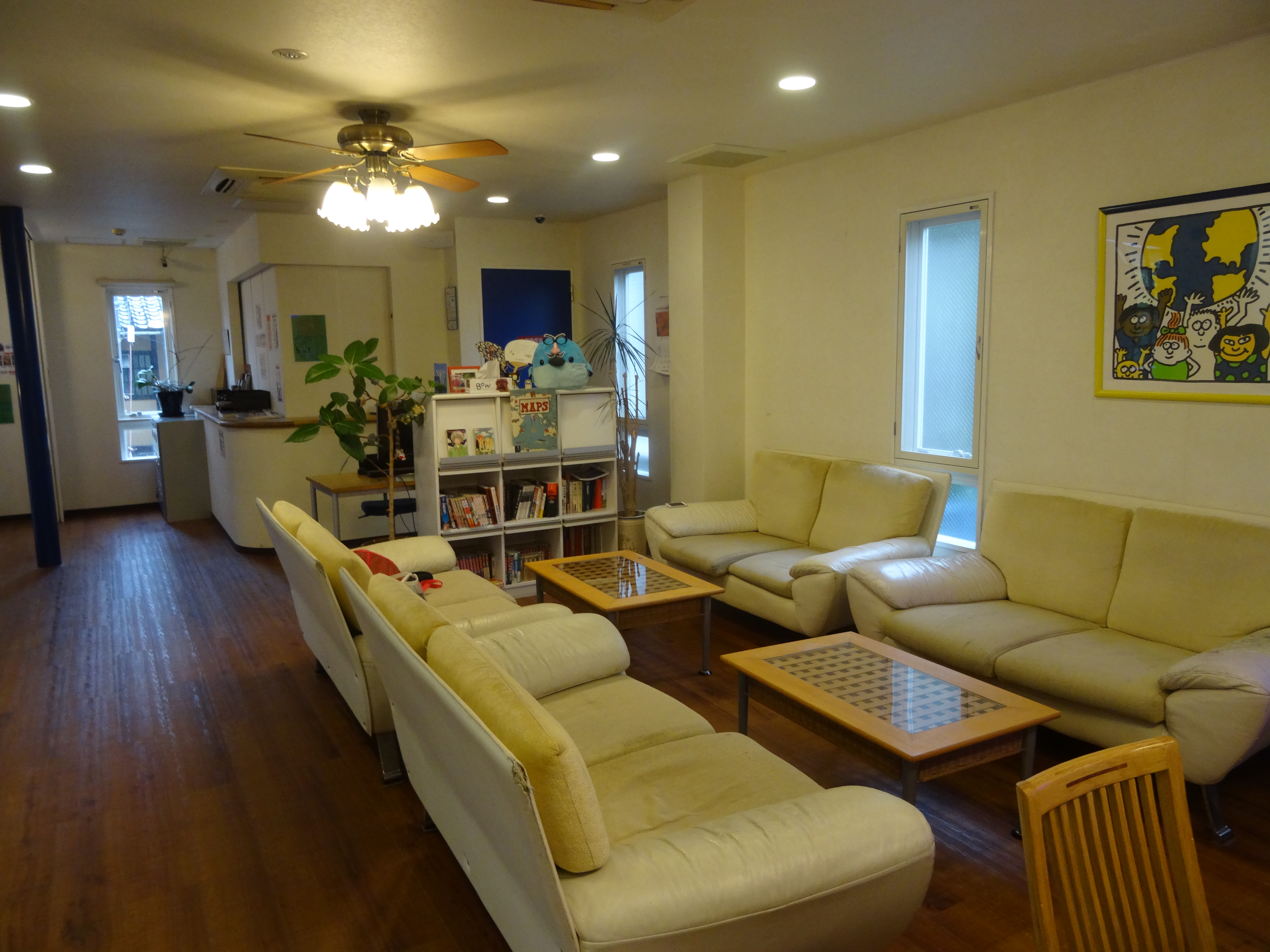 Le lit du Mystay Kanda est très confortable mais l’hôtel donne sur une rue très passante, ce qui trouble quelque peu le sommeil. On déguste les makis achetés hier, ce n’est pas souvent qu’on mange du poisson au petit-déjeuner. Vers 8 heures 30, on se met en marche pour la gare, l’objectif étant de ne pas arriver trop tard à Kyoto. Afin de réserver nos sièges, on entre dans une agence commerciale. Le gars au guichet nous explique que toutes les places réservables ont déjà trouvé preneurs, et ce dans tous les trains jusque dix heures. Tant pis, on accélère le pas pour prendre le train de 09:03 et monter dans un wagon sans réservation où on trouve facilement de la place. Notre voisine, une dame âgée, engage la conversation avec nous mais la barrière linguisitique (elle parle très peu anglais) rend les choses complexes. 2 heures 40 plus tard, nous voici à Kyoto. Notre auberge, la K’s House n’étant pas très loin de la gare, nous nous y rendons à pied.